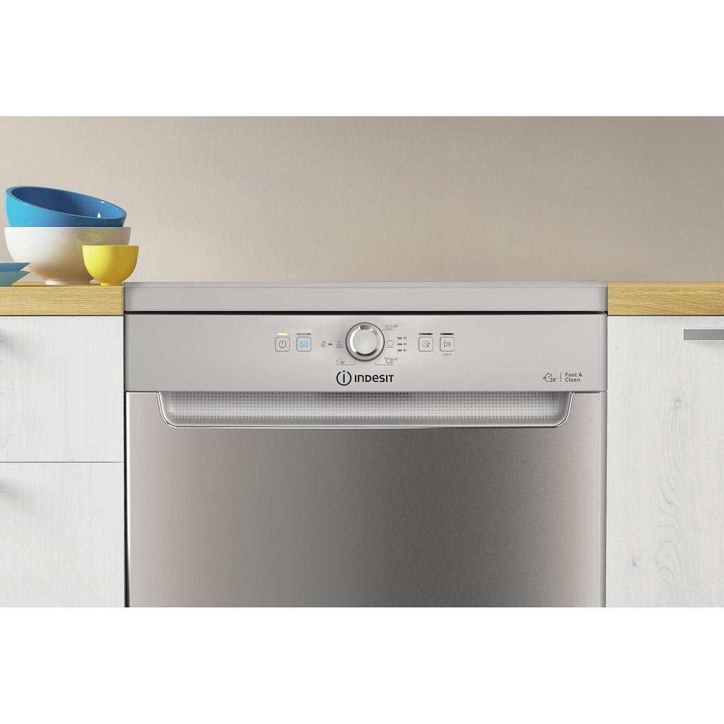 Achieve sparkling results with minimal effort, the DFE 1B19 X UK Indesit Dishwasher with an A+ energy rating combines space for up to 13 place settings with intuitive cycles for sparkling results every time. With a range of programs there’s a cycle for every event whether you need an intensive clean, a quick turnaround on the essentials or an efficient half load. With water usage as low as 12L on selected cycles, you benefit from a set of cleaning options which work to keep your bills down too. The 28 minute Fast&Clean cycle helps to reach perfectly clean dishes in less than half an hour or use the Push&Go feature for clean and dry dishes in just one push, with minimum fuss in mind.