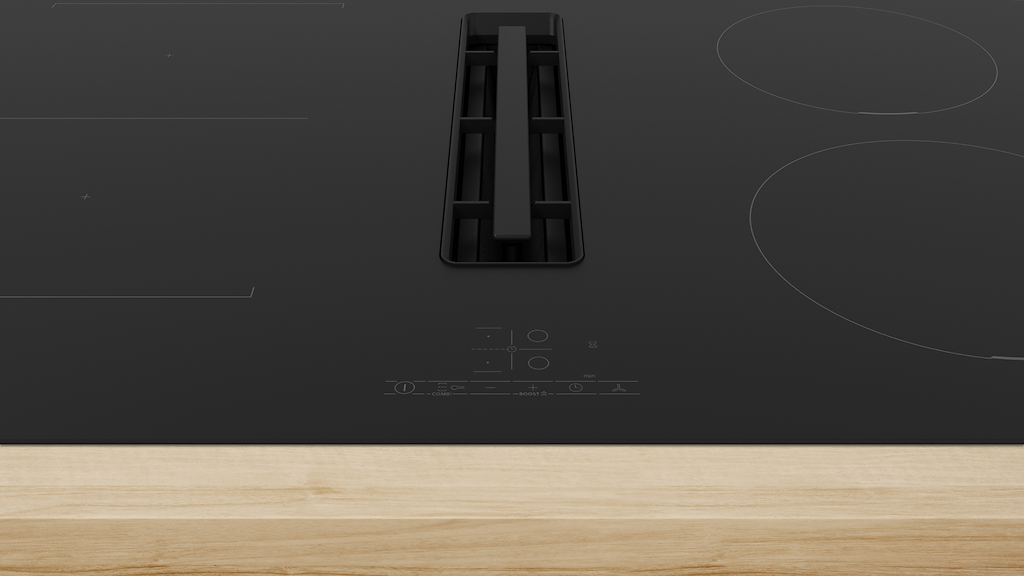 - Induction cooktop with fully integrated high-performance downdraft extractor.