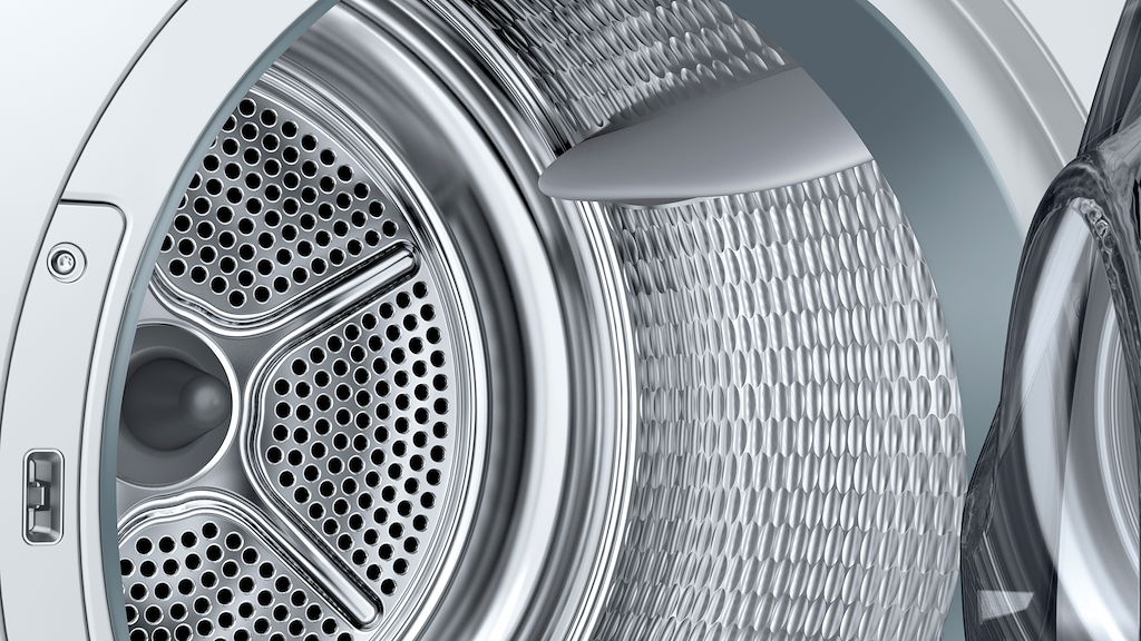 - Sensitive drying: large stainless steel drum with textile care and revolution drying system
