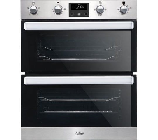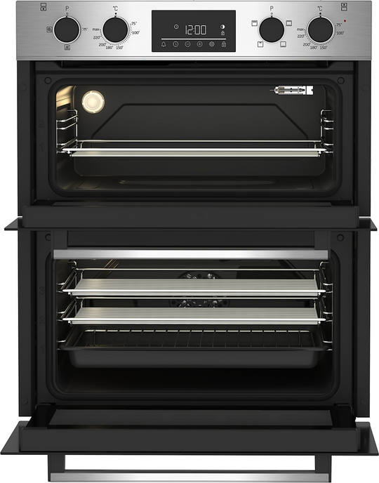 Absolute - Double Oven - Push Push Dials - Stainless Steel With Telescopic Shelves, Twin Grill and Defrost & Slowcook