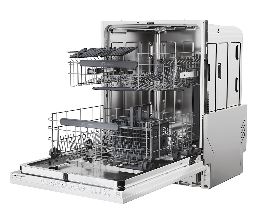 Candy Rapido' is the Fastest & Most Spacious Dishwasher in the market. It is provided with a wide set of rapid cycles for every need, simplifying daily usage thanks to the MAXI-TUB, the most spacious tub in standard size for loading even the largest items. Less washing time, more washing space.