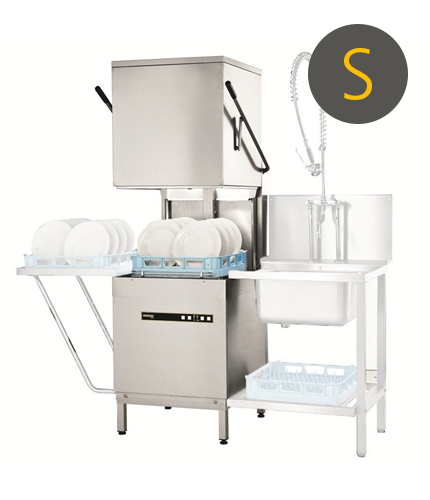 Hobart Ecomax H604SW-12B Hood / Passthrough 500mm Basket Dishwasher WRAS Approved with Water Softener 18 Plate Capacity