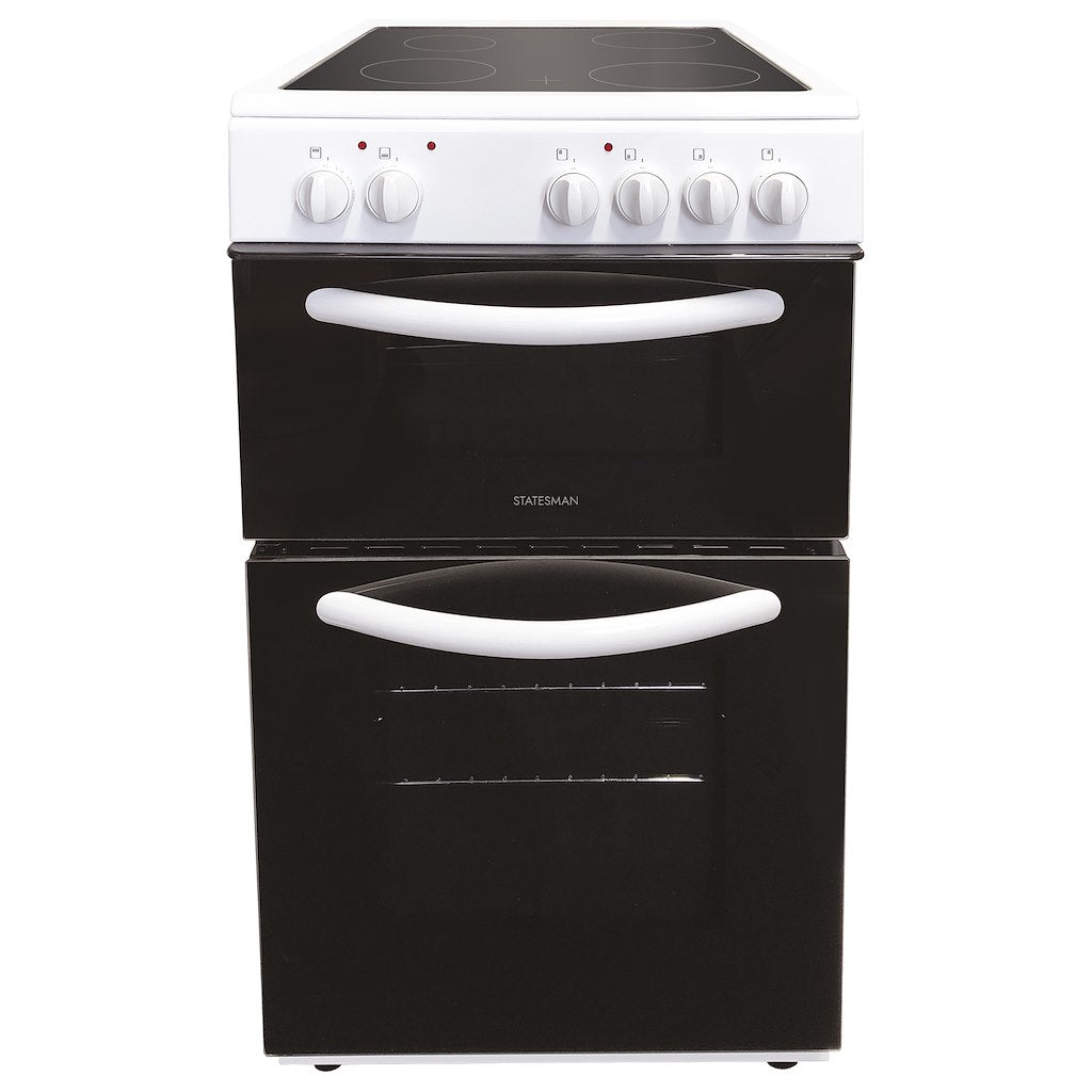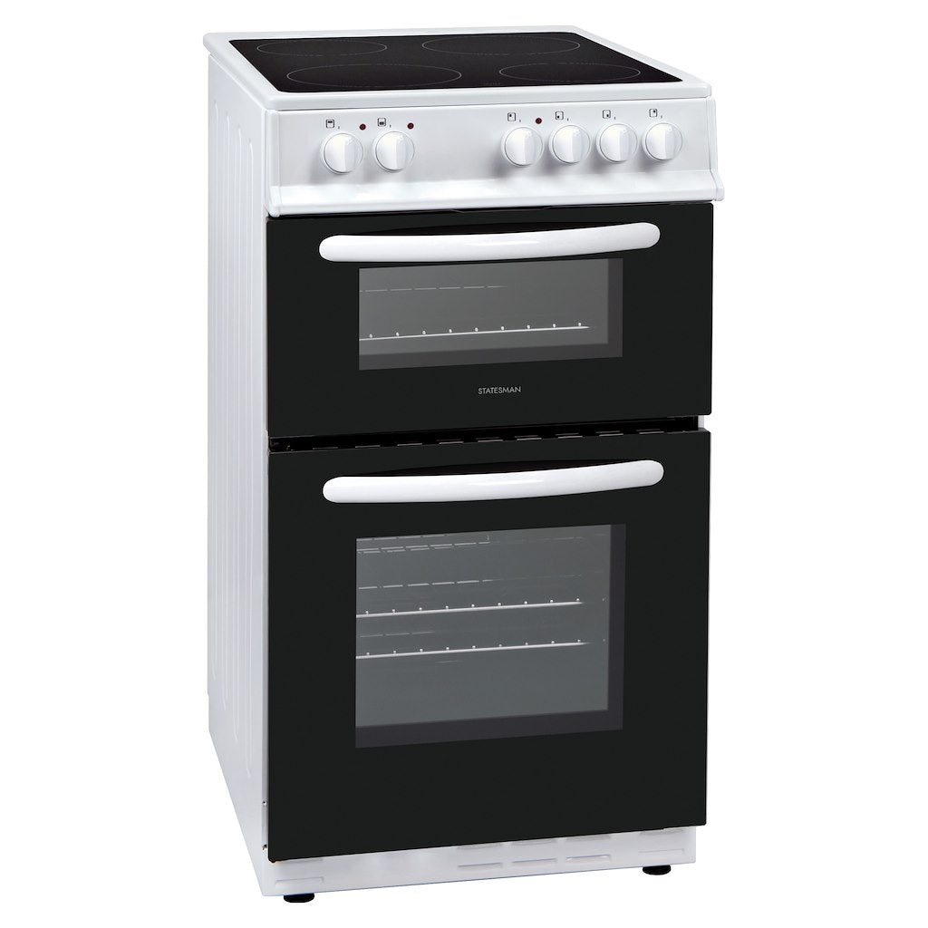 White Statesman Free Standing Electric cooker EDC50W. This A energy rated model comes with a 58 litres capacity. This Statesman cooker has install dimensions of 50cm (width) x 90cm (height) x 60cm (depth). The EDC50W model also comes with 4 number of burning zones, 2 number of cavities, control panel, an interior light and a manufacturer's warranty of 2 years for peace of mind.