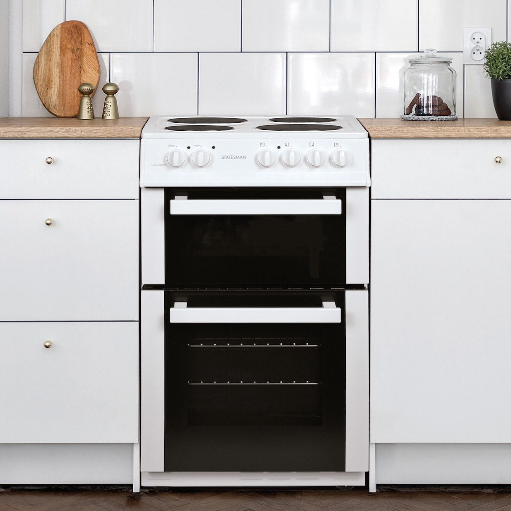 Statesman FUSION50W freestanding electric solid plate cooker 50cm - white. 50cm Twin Cavity Electric Cooker
