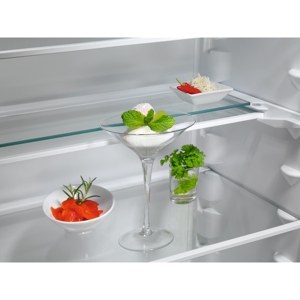 Experience flexible fridge storage with the FlexiShelf. The front section slides seamlessly underneath the remaining segment to accommodate taller items.