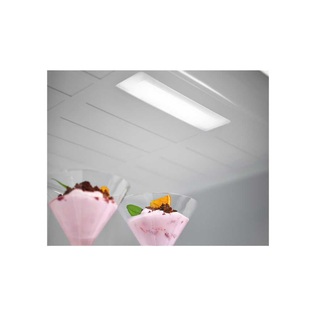 MultiFlow protects food quality by maintaining stable, even temperature and humidity. Multiple air channels in the back wall actively circulate cold air to reach every corner and allow stoarge in the back without the risk of freezing items.