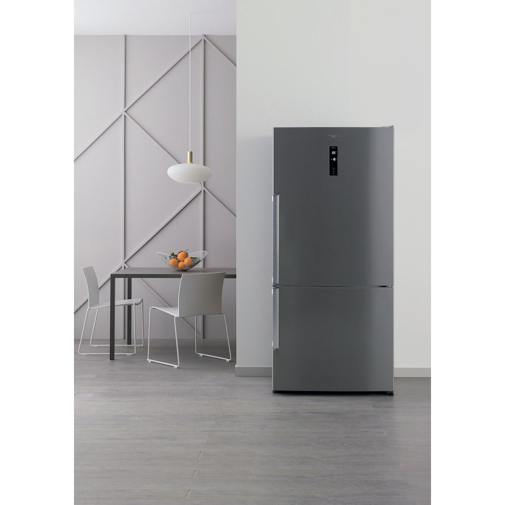 This Whirlpool Fridge Freezer features: stainless Steel Stainless Steel design. No frost, frost free technology, that effectively prevents ice build-up in your Freezer, by reducing humidity levels. This ensures excellent preservation through constant temperature, ideal humidity and no frost in the fridge and freezer for a friendlier climate for your food. A tall appliance to fit your family needs. Glass shelves with profile fronts, providing robustness, elegance and extra safety.