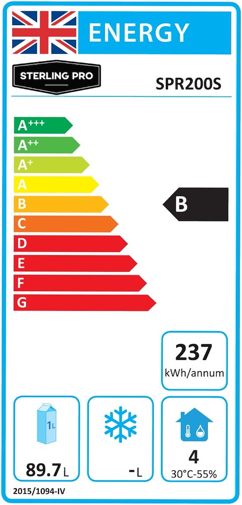 Sterling Pro Cobus SPR200S Single Door Stainless Steel Undercounter Refrigerator 140 Litres