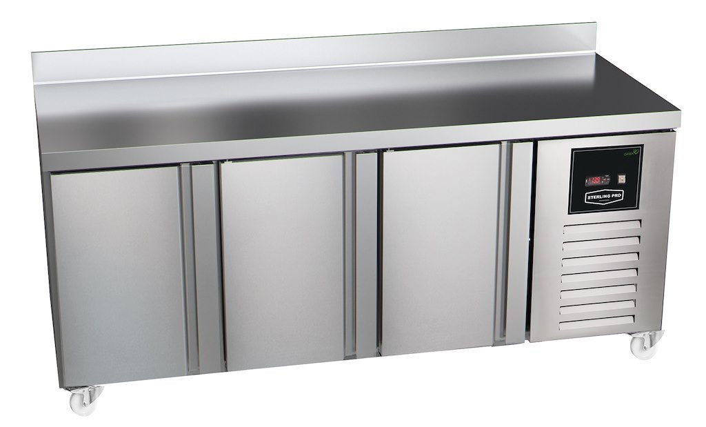 Sterling Pro SPI-7-180-30 Green 3 Door Counter Fridge with 100mm Splashback 452 Litres