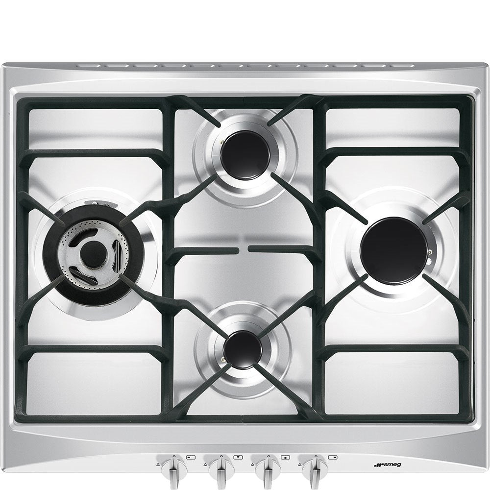 60cm Cucina Gas Hob, Stainless Steel, 4 burners, Automatic Ignition, Safety valves, Adaptable for LPG