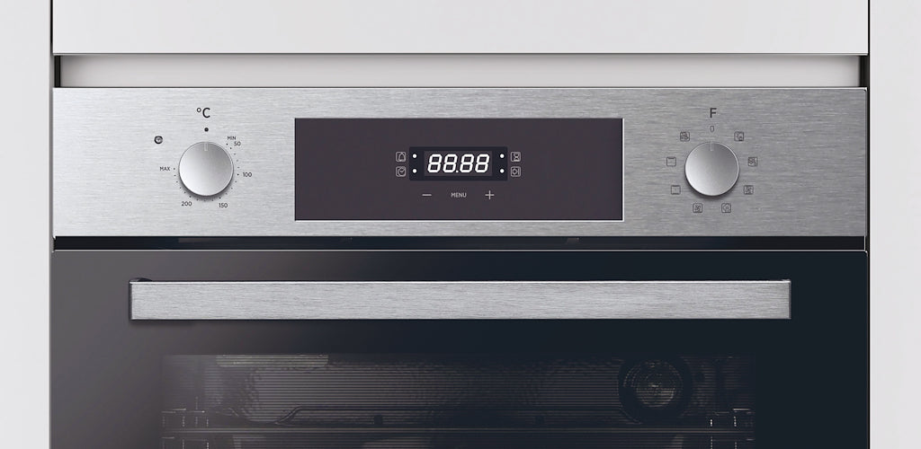 This sleek stainless steel oven combines energy efficiency with versatile functionality, featuring an A+ energy rating to help reduce power consumption. With a 70L capacity and 9 cooking functions, it’s designed to handle a wide range of recipes with ease. The LED programmer provides clear, easy-to-read settings, while the Hydro Easy Clean function simplifies maintenance by loosening grease and residue for effortless cleaning. Control is precise and user-friendly, thanks to a combination of rotary and touch controls, making this oven a perfect blend of convenience, style, and performance for any kitchen.