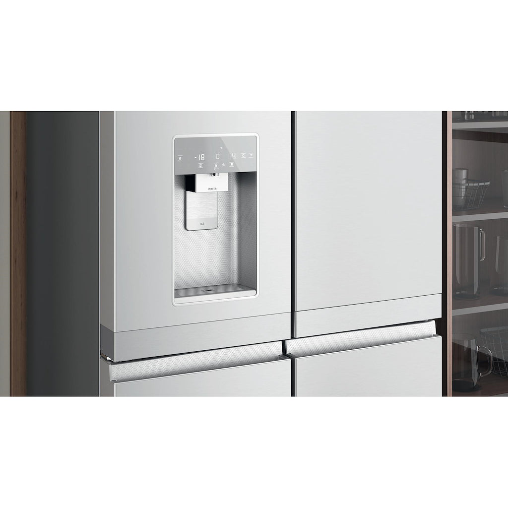 The Hotpoint HQ9I MO1L UK Active Four-Door American Fridge Freezer in stainless steel offers you a helping hand with flexible storage space, generous capacity and food preservation at its heart. It comes with thoughtful technology, such as Active Oxygen, for long lasting food freshness through reducing up to 99% of bacteria and viruses*. Triple No Frost technology is our best solution to keeping your fridge and freezer frost free. It includes three independent evaporators that circulate air around your fridge, freezer and convertible zone, so you're never left with soggy salads or the need to defrost the appliance. It features Active Fresh technology, that constantly monitors the temperature inside as well as an ice and water dispenser. *Virucidal field tests done by Notovir srl following the Guidance on the BPR, Vol. II Parts B+C, v. 3.0 Apr 2018 and including also Human Coronavirus OC43 for 24 hours at 4°C. Results referred to Murine Norovirus and Human Coronavirus OC43 and may vary based on shelf positioning and presence/absence of packaging. Tests on bacteria done by an independent laboratory on Petri plates in the 24 hours, according to ISO 22196, bacteria tested E.Coli and St. Aureus.