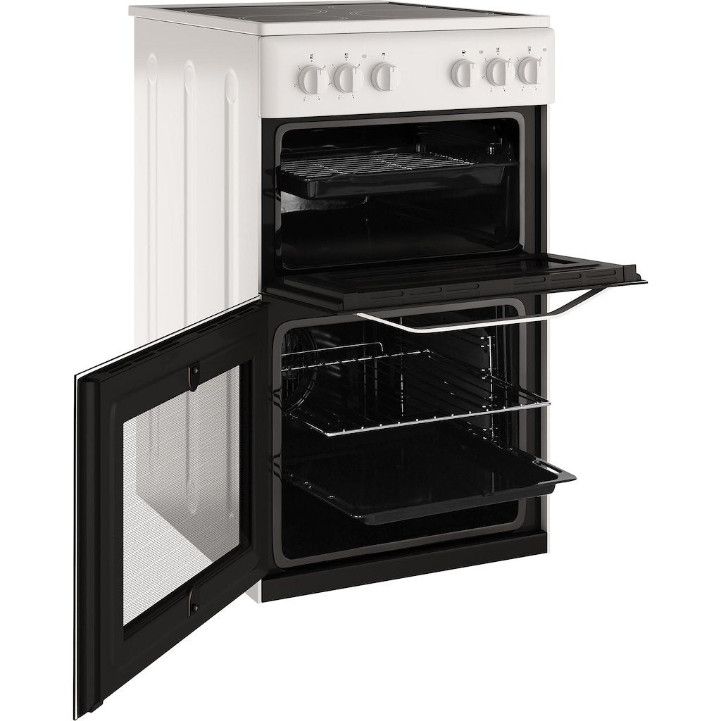 All you need in the kitchen for serving up delicious meals, The Hotpoint HD5V92KCW electric cooker with a ceramic hob comes in a white finish provides a stylish yet traditional cooking experience in your home, the 50cm width cooker is split between a large 62L cavity and a secondary 33L cavity. The main oven comes with catalytic cleaning liners, which use the heat of the oven to break down grease and fat, so you can spend more time cooking and less time cleaning.