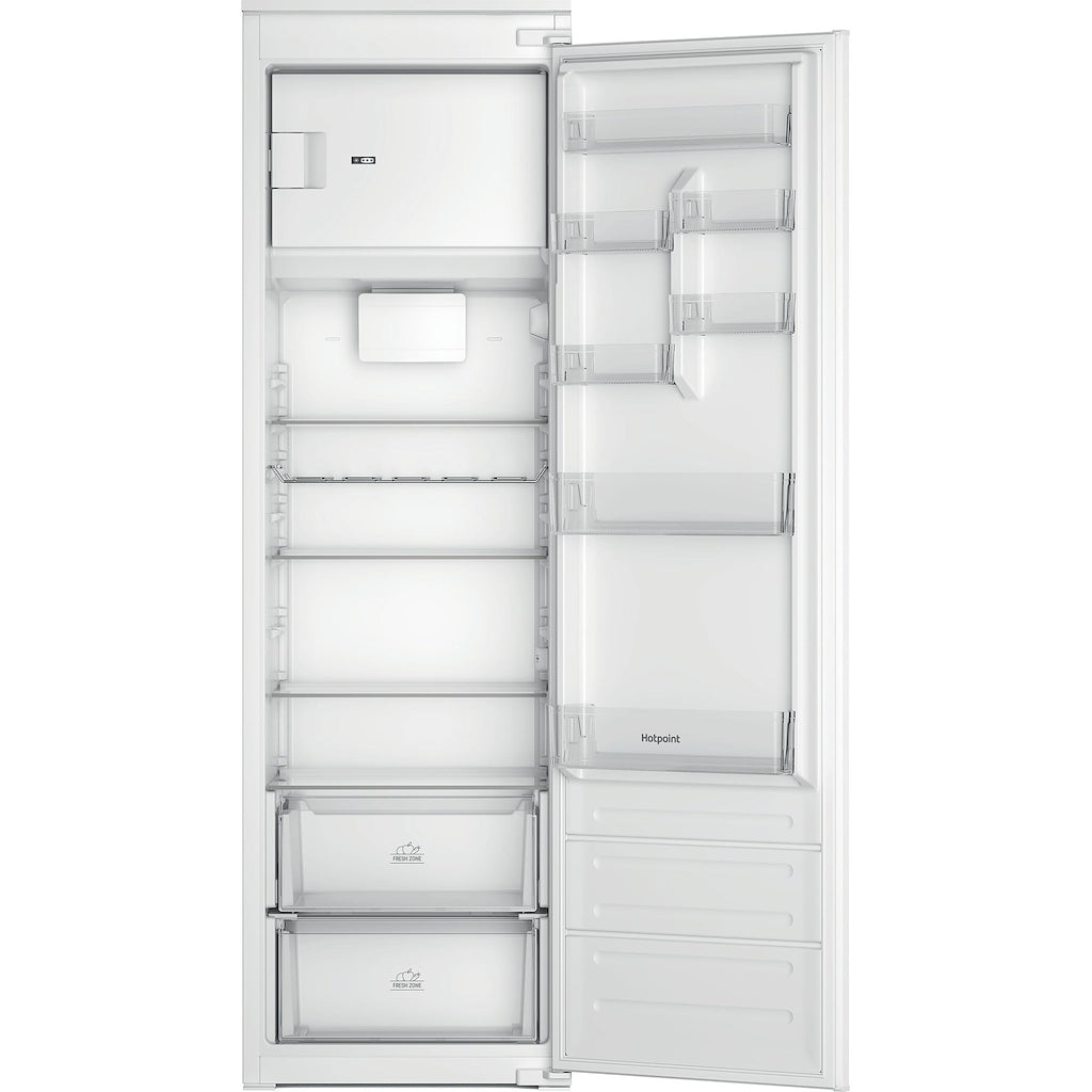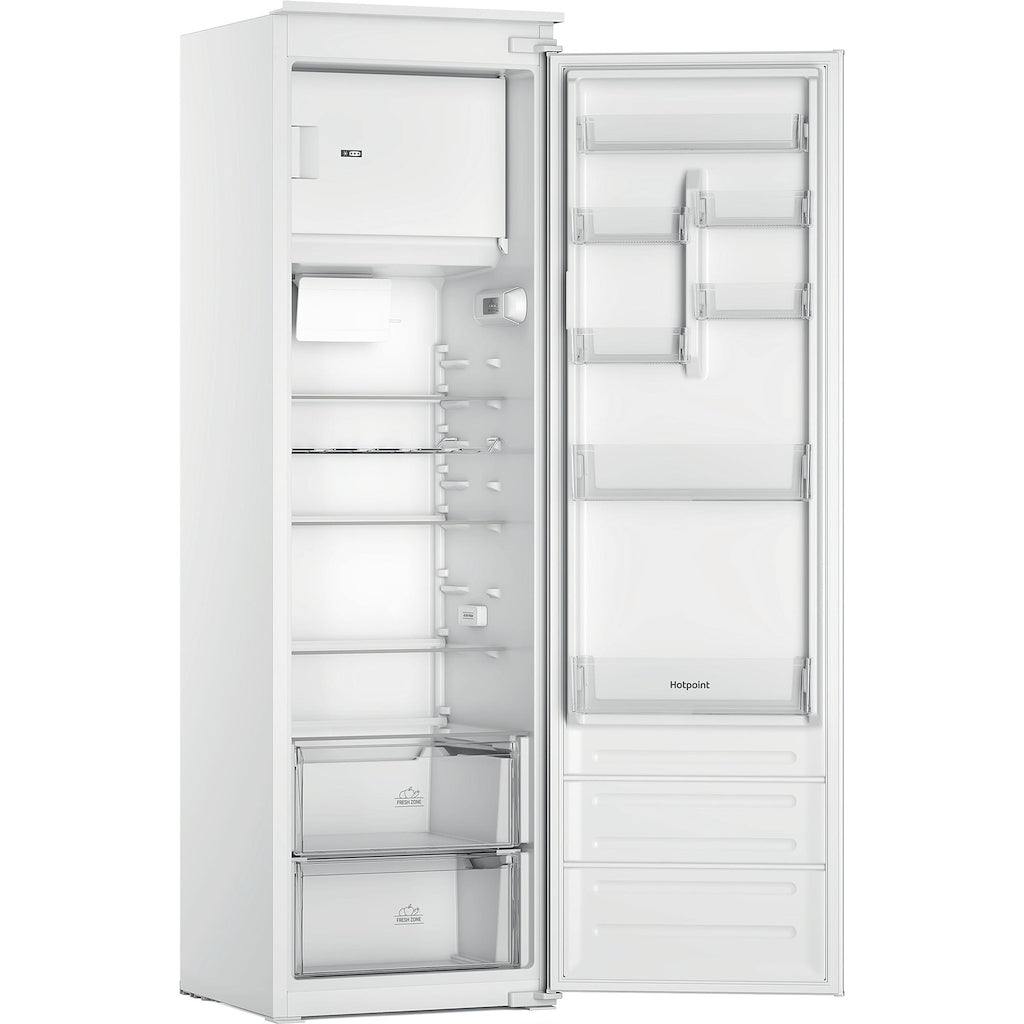 This Hotpoint built-in, tall fridge is ideal if you need extra fridge space alongside a handy freezer compartment and includes thoughtful technology that's focussed on keeping your food fresh and reducing waste. Blending seamlessly into your kitchen design, this fridge has a large capacity of 292L, which is ample space for 16 shopping bags worth of groceries - perfect for a large weekly shop. Our handy Low Frost technology reduces ice build-up, so you won't need to defrost as often. The two Fresh Zone drawers maintain the correct temperature for crisp salads and long lasting vegetables. Meanwhile, our quiet and durable Inverter Compressor immediately reacts to the door being opened, swiftly restoring a stable temperature to keep your food fresh and energy bills lower. Plus, adjustable shelves offer added flexibility to accommodate larger items effortlessly, while a bottle rack keeps bottles and beverages chilled in a dedicated space. You can even pair this product with a matching built-in Freezer for that perfect, seamless look.