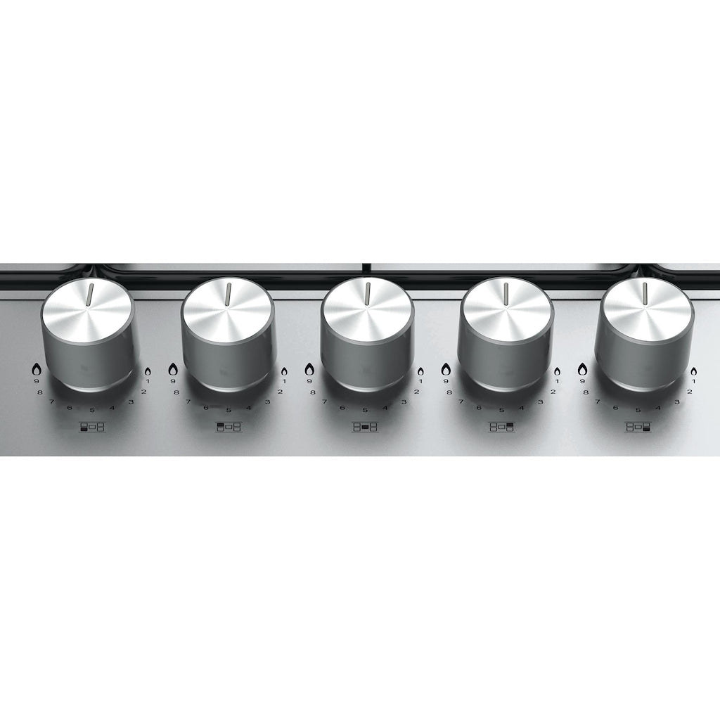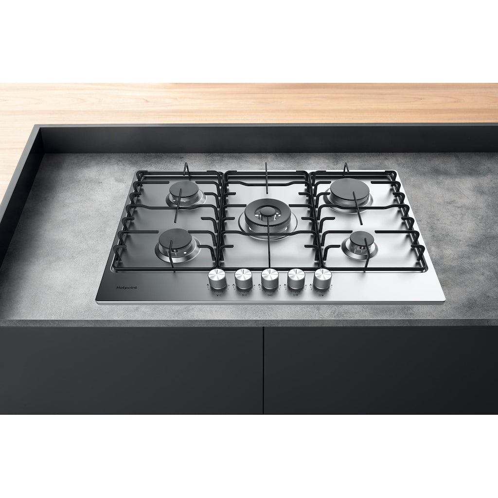 This Hotpoint Gas Hob has a classic stainless steel finish and enamelled supports to ensure your pans are secure and stable. It features five gas burners, including a mix of fast, semi-fast, and standard burners, making it easy to accommodate all your cooking needs. The triple crown wok burner optimises the power of gas, delivering even heat around the pan, so you can whip up a stir fry in minutes. No matter what's on the menu, you can rely on Hotpoint to provide the ideal flame level. Whether you're melting butter, boiling pasta, or frying a steak, with 9 flame levels to choose from, you can find the ideal heat for your dish. For added peace of mind, each area of the hob uses an automatic ignition switch and is fitted with a Flame Failure Device to ensure that if your flame goes out, the gas supply automatically stops. If you don't have access to natural gas, our hob includes a handy kit to convert it to liquefied petroleum gas (LPG), so you can get cooking with ease.