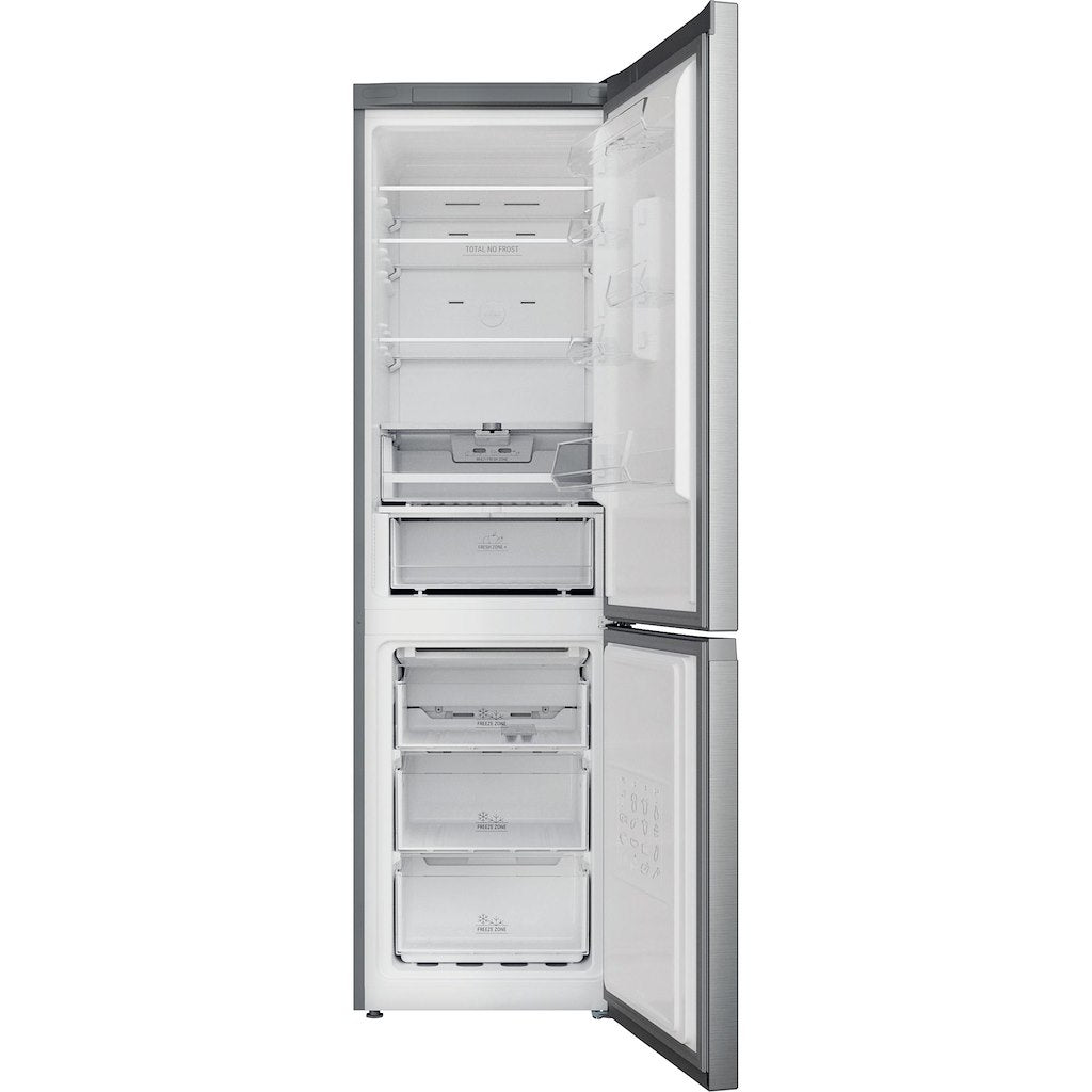 This Hotpoint freestanding Fridge Freezer features: a tall appliance to fit your family needs. No frost, frost free technology, that effectively prevents ice build-up in your appliance, by reducing humidity levels. Glass shelves, providing robustness. Convenient bottle balcony to safely store your bottles.