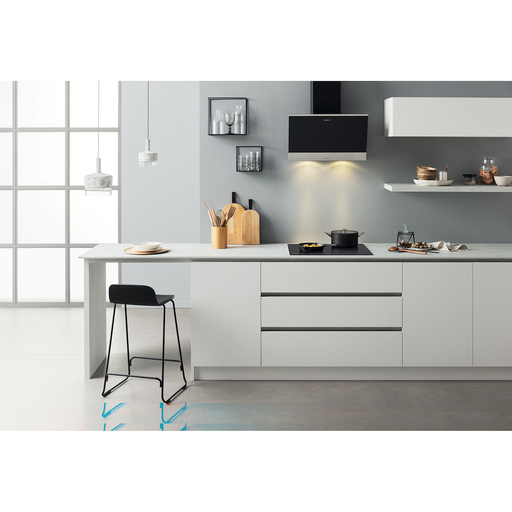 Fast, efficient, and easy to clean. The Hotpoint TS 5760F NE Induction hob has it all, from touch control, allowing you to have complete control at your fingertips, to direct access control, giving you the control of each individual cooking zone via the dedicated responsive slider to take advantage of the 18 flexible power levels and booster function when you need that extra bit of power adding to your cooking. Complete cooking assistance manifests in the form of the My Menu feature, catering for all your cooking needs with a range of 4 cooking methods: melting, boiling, keep warm and slow cooking to assist you to prepare any recipe on any zones. My Menu provides you with extended cooking capabilities to give you a more versatile kitchen experience. With full control of your hob over a 60cm width, you can take advantage of having full flexibility with your cooking by using FlexiSpace technology, giving you ease of movement, transfer your saucepans from one zone to another, the hob will respond automatically to aid ease of cooking when dishing up your favourite meals and combines brilliantly with Active Heat which provides you with 3 independent zones, all with different temperature levels: low, medium and high. This allows you to move pots and pans from one zone to the other without having to manually change the temperatures. Giving you comfortable assistance in your cooking ventures, the Hotpoint TS 5760F NE Hob is always at hand throughout.