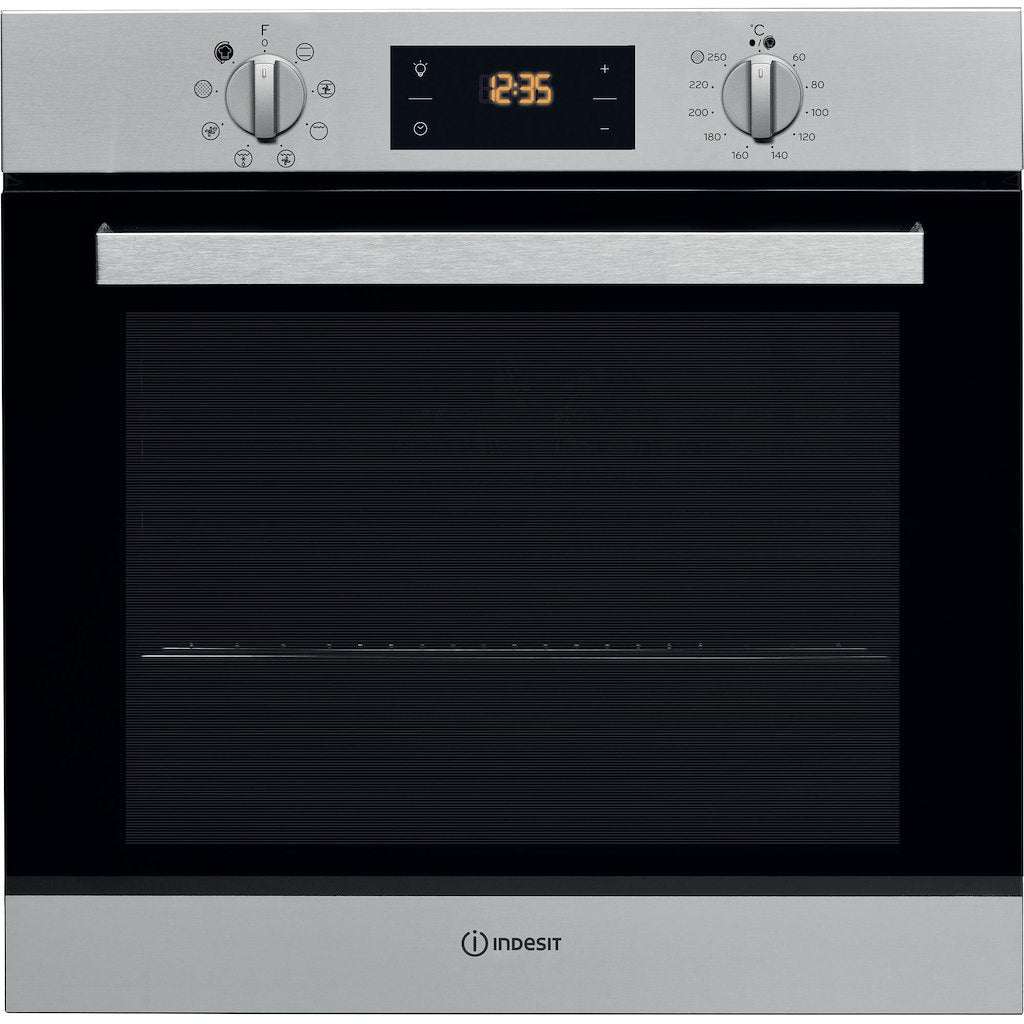 This Indesit built in Oven features: self cleaning technology, that uses a high-temperature cycle to burn food residues into ashes, which can then be easily wiped away with a sponge. Advanced electric technology allowing you to cook dishes saving energy.