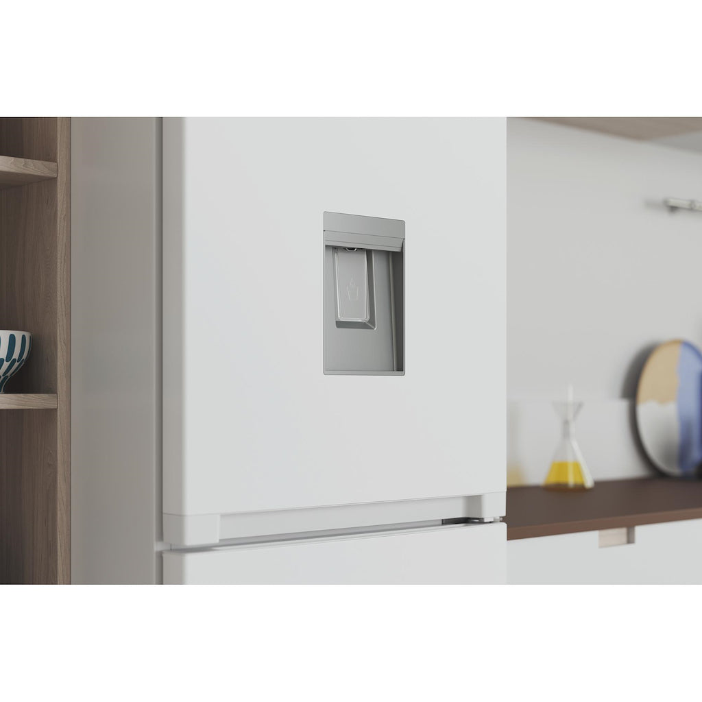 This Indesit freestanding Fridge Freezer features: a tall appliance to fit your family needs. White colour. No frost, frost free technology, that effectively prevents ice build-up in your appliance, by reducing humidity levels. Glass shelves, providing robustness. A fan that provides a smooth and even flow of air in your appliance's cavity, for enhanced ventilation.