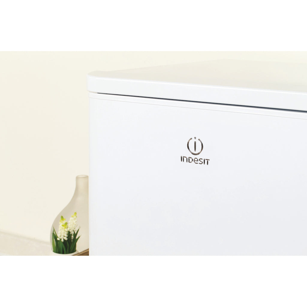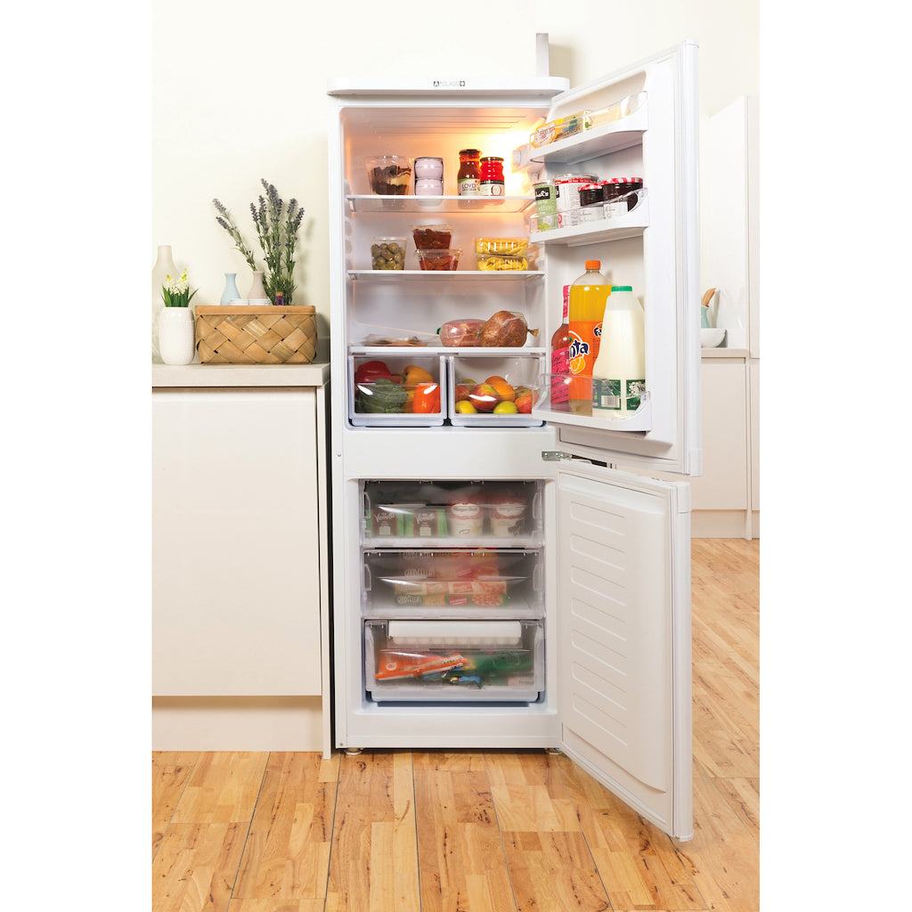 This Indesit freestanding Fridge Freezer features: white colour. Glass shelves with profile fronts, providing robustness and extra safety. Convenient bottle balcony to safely store your bottles.
