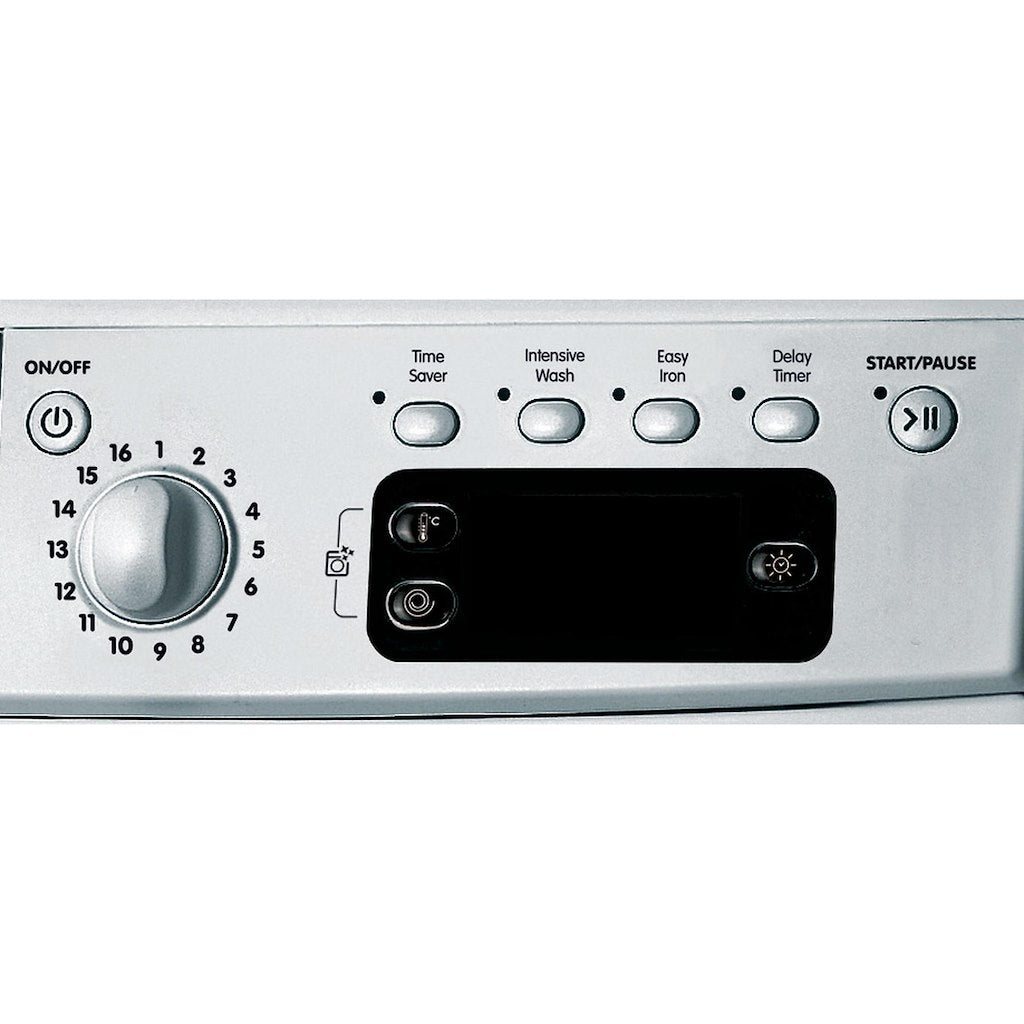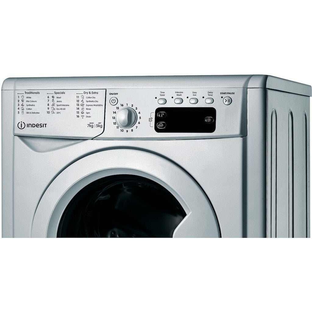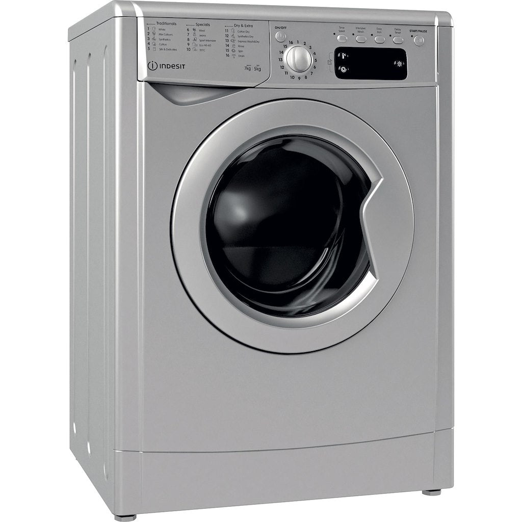 This Indesit freestanding Washer Dryer features: outstanding 7kg washing capacity. Spacious 5kg drying capacity. A fast, resource-efficient 1400 revolutions per minute spin speed. Silver colour.