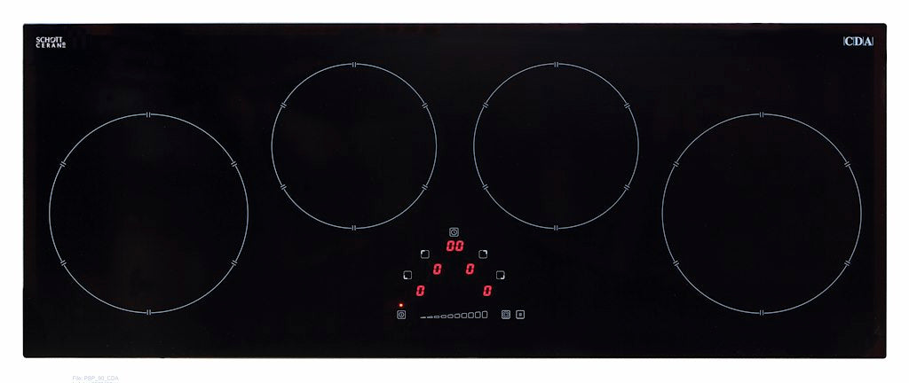 Frameless CDA Electric Hob HN9626FR. It has 4 total number of positions and 9 Power Levels. This CDA Hob has install dimensions of 90cm (width) x 5cm (height) x 35cm (depth). The HN9626FR model also comes with timer, and a manufacturer's warranty of 5 years for peace of mind.