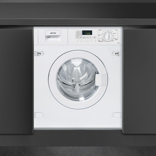 White Smeg Fully Integrated Washing Machine WMI147C, Smeg washing machine has install dimensions of 596mm (width) x 818mm (height) x 546mm (depth) and an noise level of 56dB. The WMI147C model also comes with 15 number...Regular price POA -