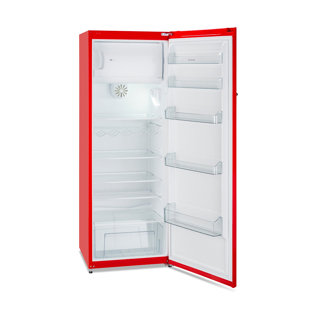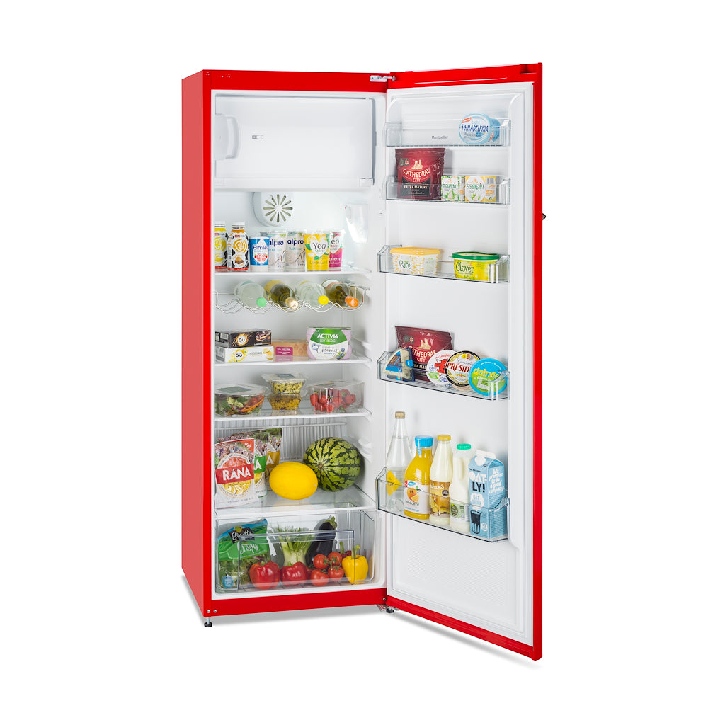We love to add colour and style into your home and our MAB341R retro fridge does just that. Retro appliances are the statement piece of any home and will add a show-stopping focal point to your kitchen. If you have a large family or prefer to stock up on fresh foods rather then frozen then this fridge provides plenty of fridge space. It has four adjustable glass shelves and a handy full width folding wire rack. The door also offers ample storage with a variety of racks and balconies for tall bottle and jar storage. A large salad crisper at the bottom will ensure that your fruit and veg items stayer fresher for longer. The icebox freezer enables you to freeze those essential well stacked items.