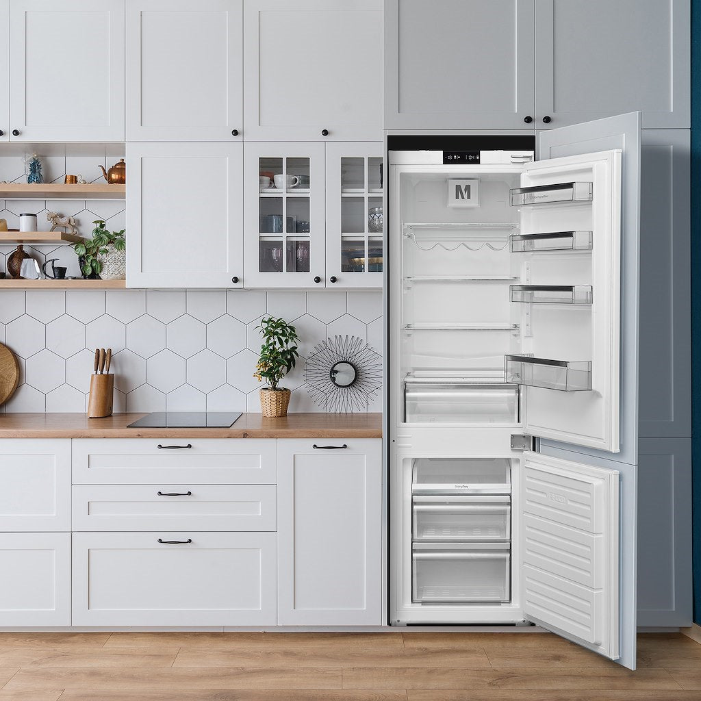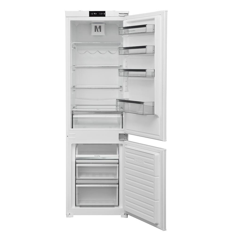 The Montpellier MIFF730FF Integrated Frost Free Fridge Freezer with Humidity Control and Turbo Air Fan Cooling is the ultimate appliance for keeping your food fresh and tasty. This fridge freezer is designed to make your life easier and more convenient, with innovative features that will revolutionise the way you store your food. General Specification With a 70/30 split and 243 litre net capacity, this fridge freezer provides an abundance of space for your chilled foods without skimping on freezer space too. The integrated design allows it to blend seamlessly into your kitchen cabinetry, creating a minimalist style. Fridge The fridge has a 180 litre capacity and three glass safety shelves with chrome trims which provide stylish, ample space to store and organise your chilled food. Four door balconies create storage versatility for a variety of bottles, jars and cartons and include handy egg holders. Turbo Fan Air Cooling helps keep the fridge at the optimum temperature and a wine rack provides extra space to keep your fizz chilled and ready to drink. Humidity Control A salad crisper provides a protective space for the more delicate items from your weekly shop, including fruit and vegetables. Humidity Control helps with more accurate control over the humidity, to keep this food fresher for longer. So you won’t have to worry about your produce going bad before you have a chance to eat it! V-Lift The door balconies have a handy V-Lift adjustable height mechanism, which means that the height of the bottle shelf can be maximised for higher bottles or reduced to save space for the dairy shelf. The positioning can be adjusted to a total of six different heights. Freezer The freezer has a capacity of 63 litres and two roomy freezer compartments for filling up with a variety of your favourite frozen foods. An additional Sliding Tray creates easy access for those products that you use most frequently. Frost Free Say goodbye to the hassle of defrosting with a Frost Free refrigeration system, which allows for faster and more efficient freezing. Ice forms in the back of the freezer and is circulated around the freezer by a fan, giving even cooling across the whole compartment. The element is in the back of the freezer, which means you do not lose any space. The freezer will automatically defrost itself on a cycle meaning no build-up of ice, therefore eliminating the need to defrost*. Installation The integrated design of this fridge allows it to blend in with your existing cabinetry, providing a sleek and modern look. Zero clearance means that the refrigerator can be placed next to the wall or cabinets and the door can be opened easily without needing additional space at 90°. Sliding hinges allow kitchen doors to be fitted onto the fridge freezer and then opened seamlessly and smoothly. Energy Efficiency Another great feature of this fridge is its energy efficiency. With an E energy rating, it’s designed to use less electricity and help you save money on your energy bills. It also has LED lighting and an LED Touch Display which allows you to adjust the temperature to keep your food fresh and prevent energy waste. Dimensions H1770 x W540 x D545mm Colour This model is available in white. Guarantee All Montpellier Appliances have a 2 year parts and labour guarantee.
