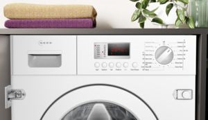 Washer dryers can be great for space saving and efficiency, squeezing in one appliance instead of making space for a separate washing machine and a tumble dryer. Fully integrated options like this one means that they can be attractively hidden behind a cabinet door.