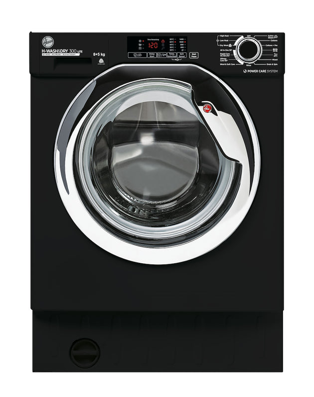 Hoover HBDS 485D1ACBE-80 H-WASH&DRY 300 LITE Integrated Washer Dryer, 8/5kg Capacity, 1400rpm, E/C Energy Rated - Black & Chrome