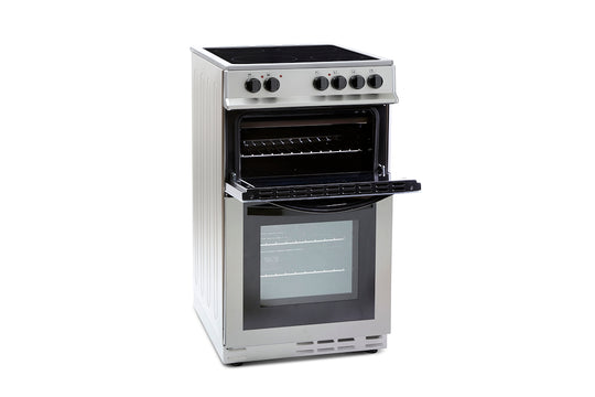 The MDC500FS is a classic ceramic cooker with double oven in silver from Montpellier. Features include a handy wipe clean four zone ceramic hob, double oven and grill, main fan oven, two wire shelves and a...Regular price POA