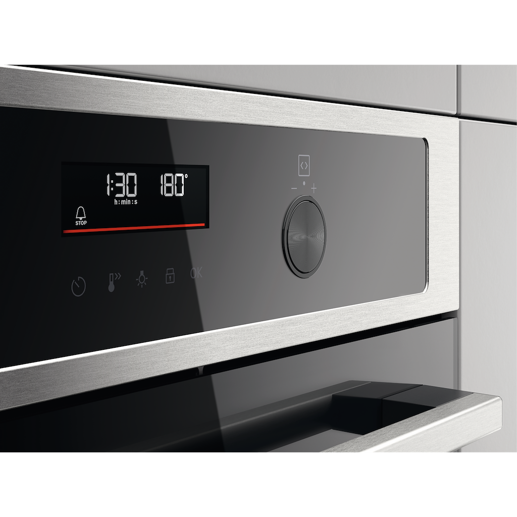 An additional cleaning tool is included inside the oven, called AquaClean. By adding water to the base, a humid environment is created with the oven's heat. So crumbs and splatters are easier to remove with damp cloth.