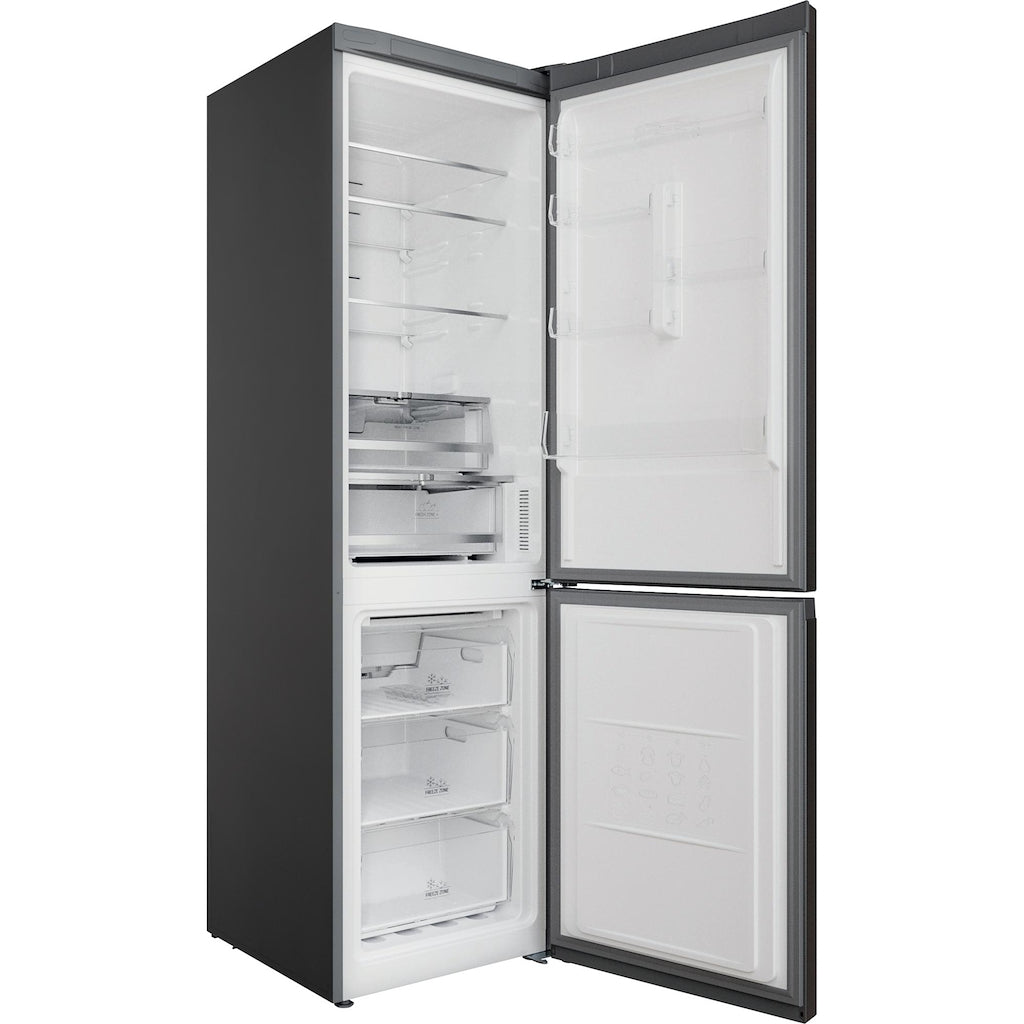 This Hotpoint freestanding Fridge Freezer features: a tall appliance to fit your family needs. No frost, frost free technology, that effectively prevents ice build-up in your appliance, by reducing humidity levels. Glass shelves, providing robustness. Convenient bottle balcony to safely store your bottles.