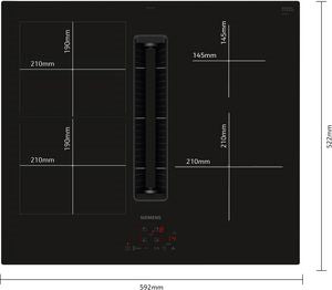 - Cooking zone rear left: 190 mm, 210 mm, 2.2 KW (max. power 3.7 KW)