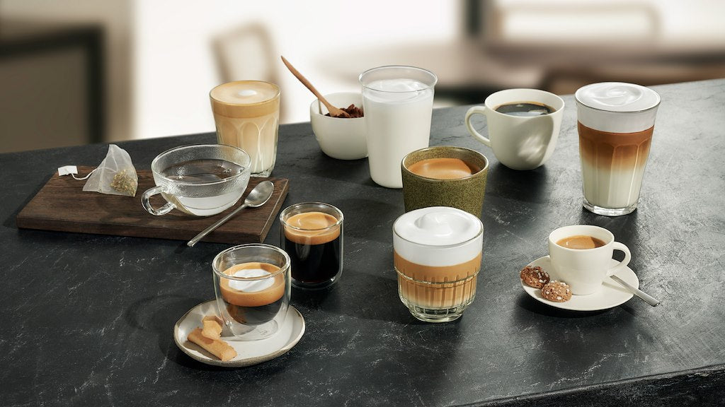 - Coffee variety at the touch of a button: Espresso, Espresso macchiato, Coffee, Cappuccino, Latte macchiato. Quick and convenient.