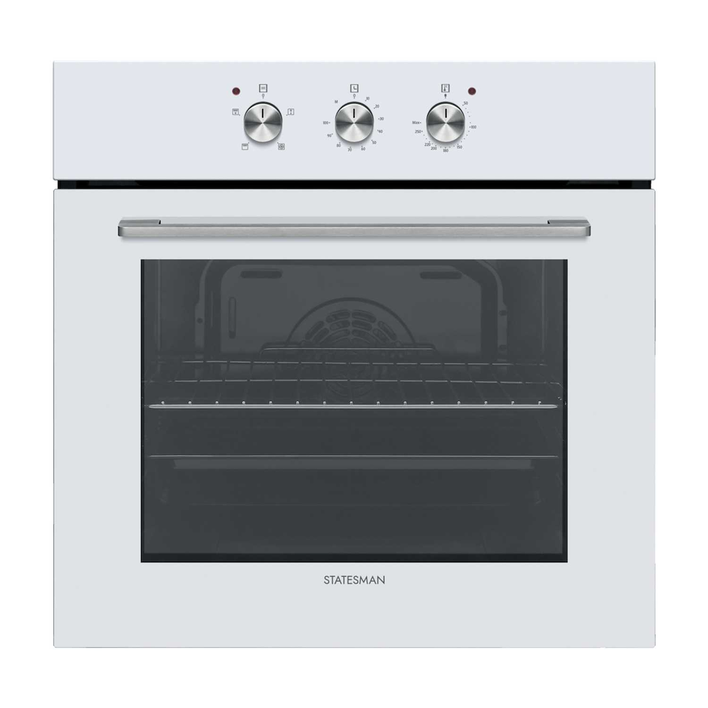 The Statesman SFO60WH Built-In 65 Litre Single Fan Oven is a fantastic addition to any home. It has a multiple cooking functions including grill, defrost and turbo fan. The removable door and enamel interior make it easy to clean and maintain for the user. The oven comes with accessories including 2 chrome wire oven shelves and a grill pan and handle set which can all be stored in the oven to save on mess and clutter.