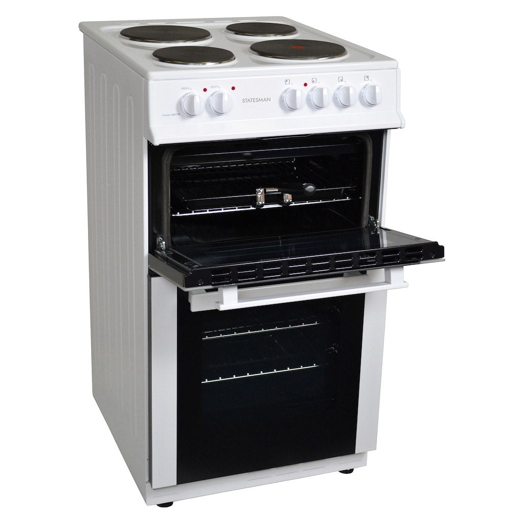 Statesman FUSION50W freestanding electric solid plate cooker 50cm - white. 50cm Twin Cavity Electric Cooker