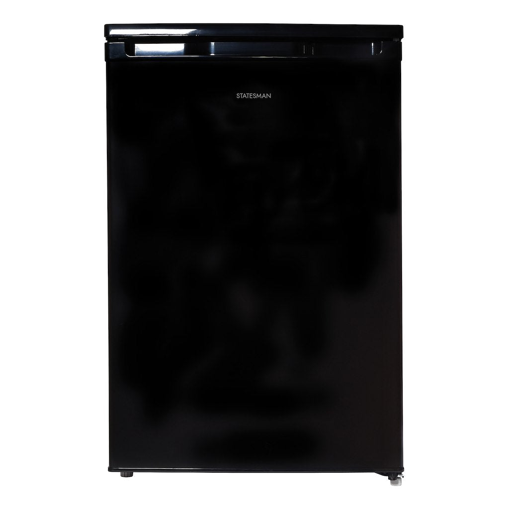 Black Statesman 55cm Under Counter Fridge with 4* Ice Box Black. This F energy rated appliance has a refrigeration capacity of 123 litres and a frozen food storage capacity of 16 litres. The Statesman R155B has one shelf with adjustable shelving for maximising your storage space as well as vegetable storage drawer for keeping produce fresh and cool and drinks storage. When installing this appliance the Statesman Under counter has dimensions of 57.4cm (width) x 86.5cm (height) x 59.5cm (depth) as well as reversible door configuration to ensure the fridge fits your kitchen conveniently and a noise level of 42dB ensuring quiet operation throughout its life cycle. Statesman provides you with a manufacturer's warranty of 2 years for added peace of mind on your new refrigerator.