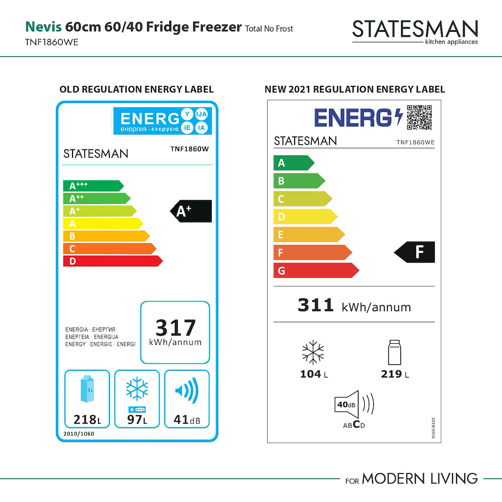 Statesman F01554FFW 152cm High 50/50 Frost Free Fridge Freezer - White