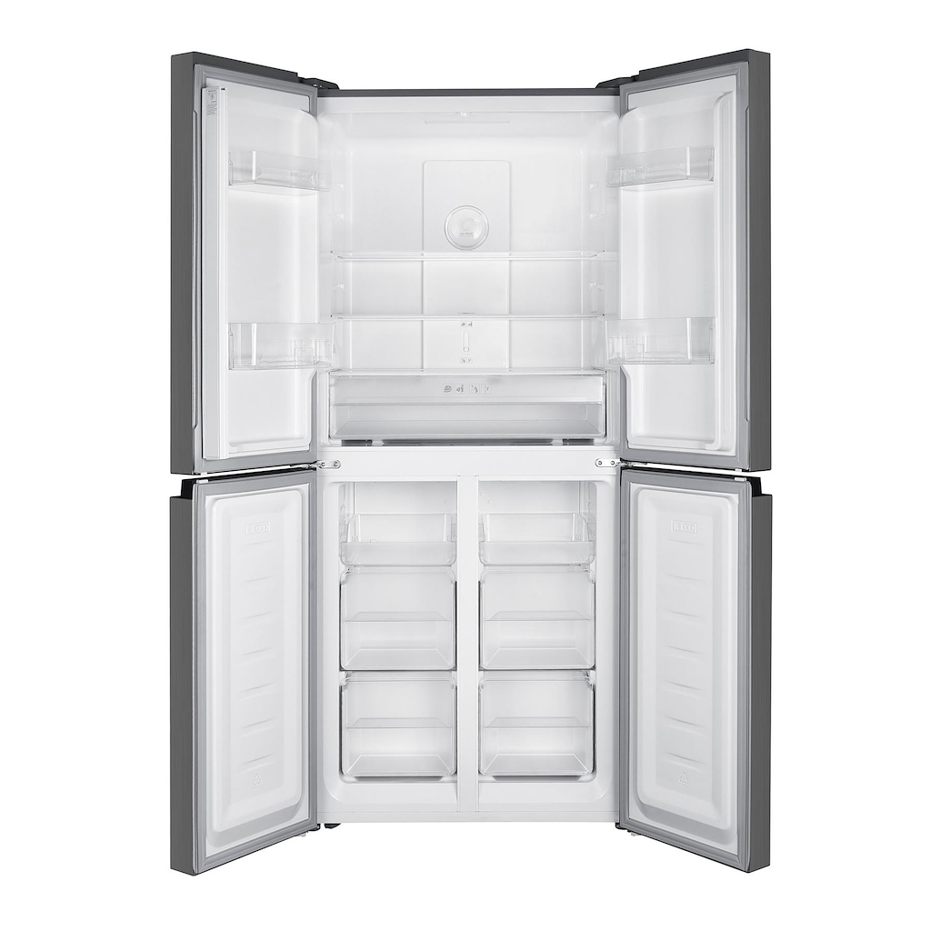 Bursting with space for all your favourite chilled and frozen foods, this Multi Door Fridge Freezer from Statesman has enough room inside for 20 bags of groceries. Its Total No Frost technology eliminates the need for manual defrost by circulating dry, cold air around the appliance and preventing condensation buildup. This technology also keeps food fresher for longer, reducing food waste. The display enables you to manually set the temperature of the fridge and freezer compartments, as well as choose from 3 preset modes: Eco, Holiday, and Super Freeze, which lets the appliance take care of setting the temperature according to the situation. With an energy rating of E (A++ on the pre-2021 scale), this fridge freezer sits on the higher end of the energy-efficiency scale, saving you money on your household bills.