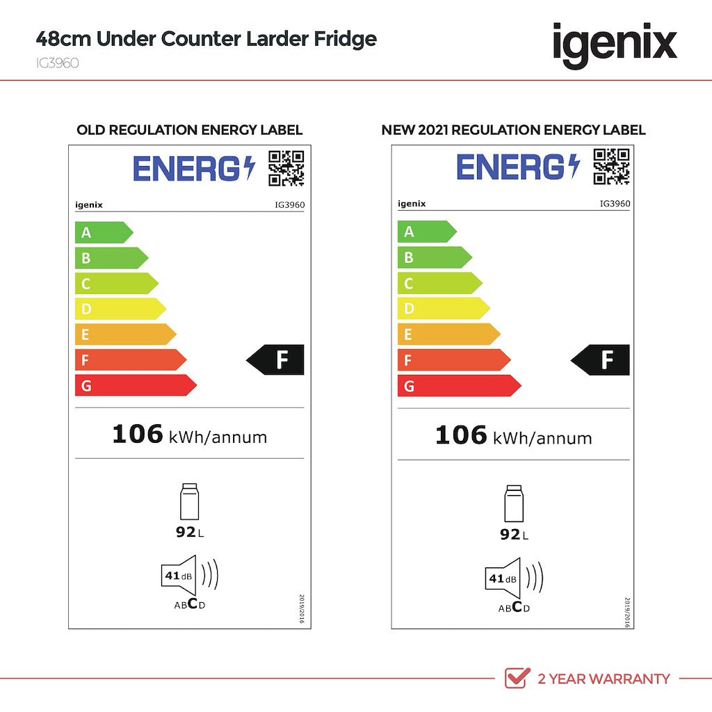 Igenix IG3960E 90 Litre 48cm Undercounter Larger Fridge - White