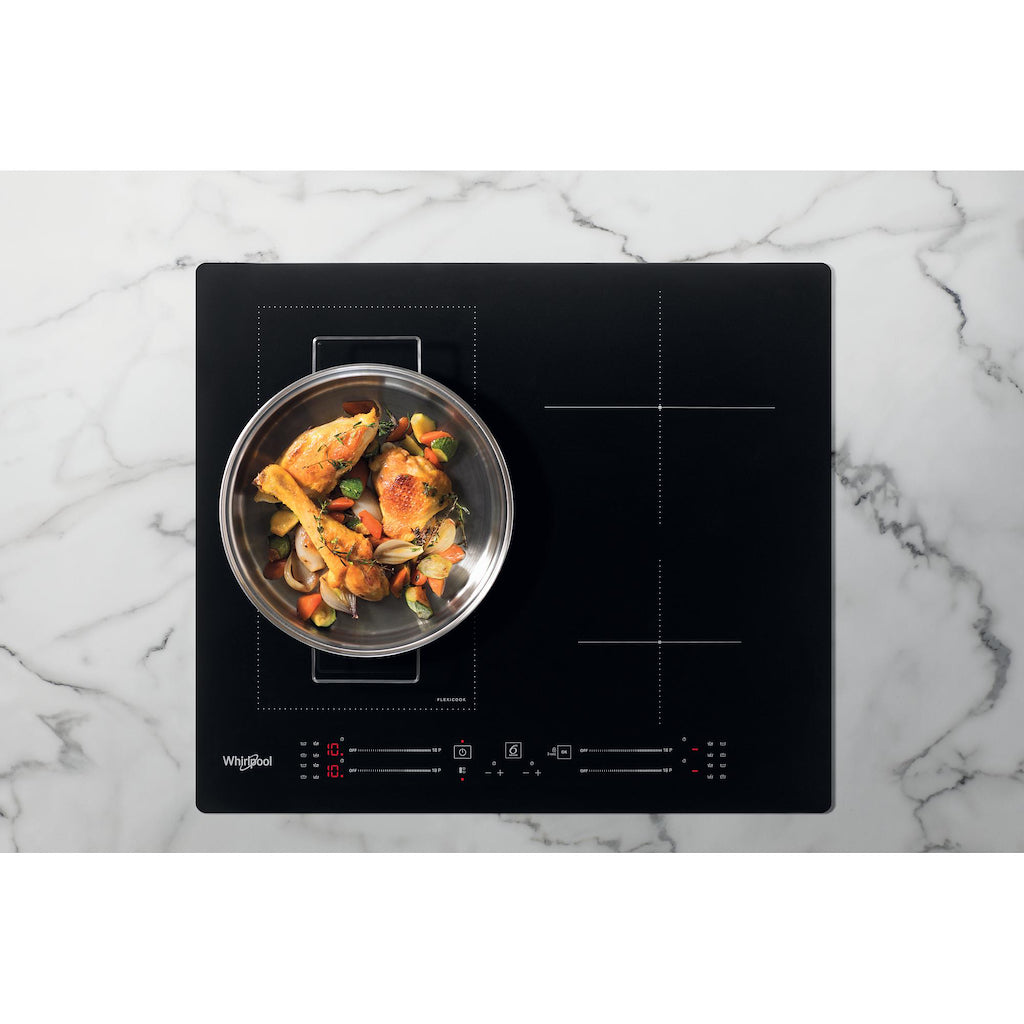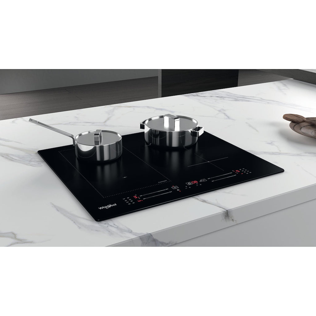 4 induction rings. flexiCook zone allows you to combine multiple burners creating one large cooking zone for larger pans and dishes. Intuitive slider, for effortless control of your appliance settings. This Whirlpool induction glass-ceramic Hob features: An elegant technology, that heats the pan, not the hob, reducing energy dispersion and providing perfect cooking results. Electric power supply.