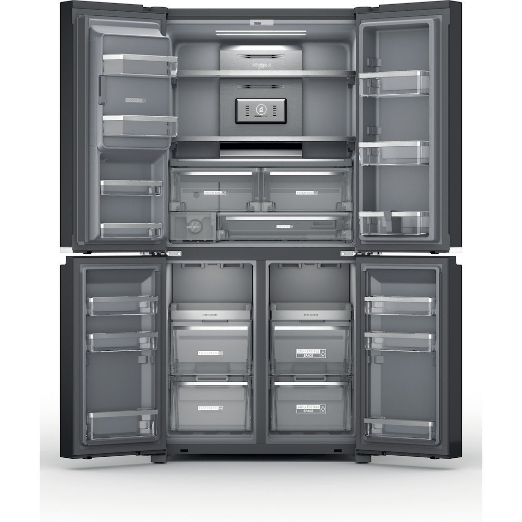 Introducing the new Whirlpool W Collection four door refrigerator finished in black steel. This stunning A+ energy rated model offers a generous capacity of 320 - 560 litres, giving you all the space you need to store your fresh and frozen food, beautifully. This model features 6TH SENSE PureControl that monitors humidity levels within the entire fridge compartment to maintain the ideal conditions, so food stays fresh for longer. Flexible to your needs with a convertible space that lets you switch from freezer to fridge with just one touch. The full compartment offers you the ultimate solution in food storage organisation, giving you 33% extra space for fruit and vegetables, or you can even choose from the six preset temperatures, developed to create the ideal temperature to store different food categories. You can connect to your appliance from wherever you are thanks to the 6TH SENSE Live App. The app is full inspiration and can even alert you when your favourite wine is chilled to perfection.