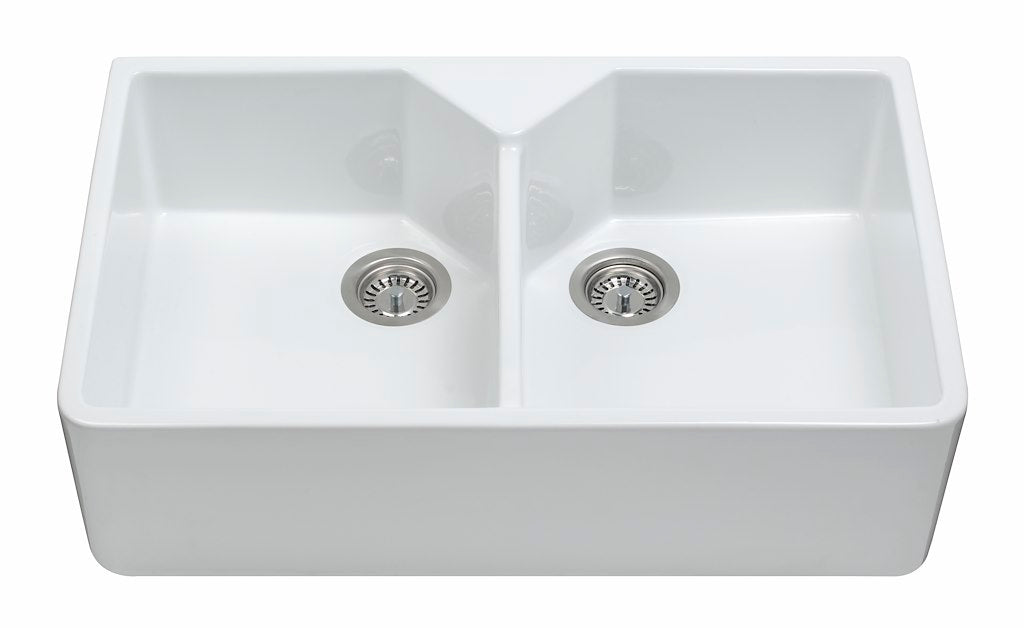 The KC12WH is a double bowl Belfast style ceramic sink. It is made from handmade fireclay and is naturally hard wearing to withstand tough use in the kitchen, complementing your modern kitchen perfectly.