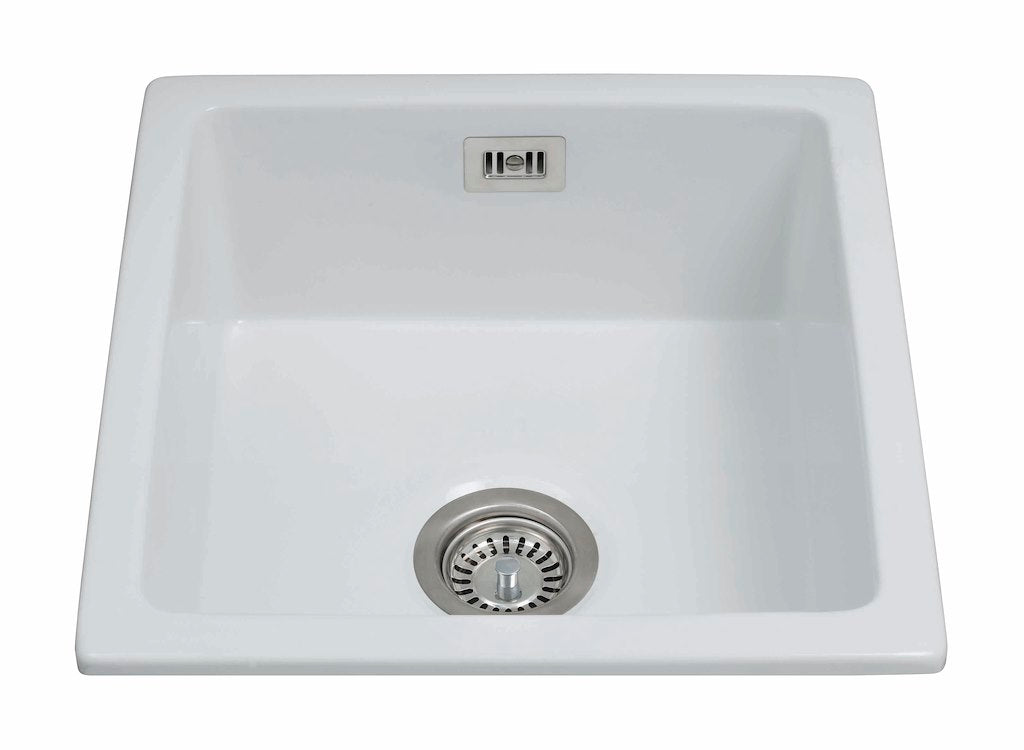 The KC42WH is a medium sized, ceramic undermount single bowl sink. It is made from handmade fireclay and is naturally hardwearing to withstand tough use in the kitchen, complementing your modern kitchen perfectly.