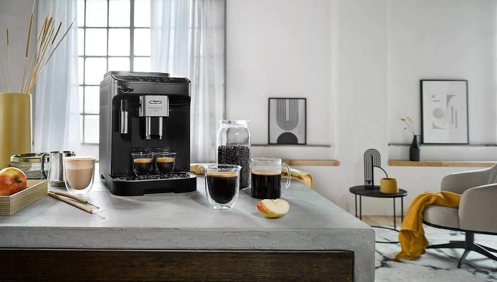 Enjoy the ultimate coffee experience from the comfort of your own home with the DeLonghi Magnifica Evo. Brew the perfect espresso from freshly ground beansm one of the 4 recipes available with a single touch of a button. Features an intuitive soft touch display with colour icons for each recipe. Its stylish black finish is the perfect addition to any modern kitchen.